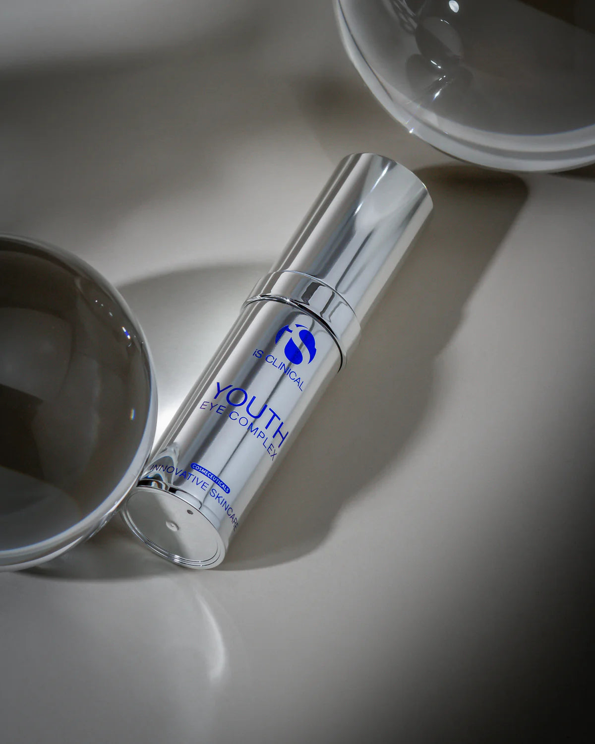 iS CLINICAL Youth Eye Complex kombiniert wirkungsvolle Peptide, Wachstumsfaktoren und Antioxidantien, um Falten, Schwellungen und dunkle Ringe unter den Augen zu reduzieren. Die dermale Struktur wird gestärkt und die Kollagensynthese angeregt, wodurch die Haut straffer und robuster wird.